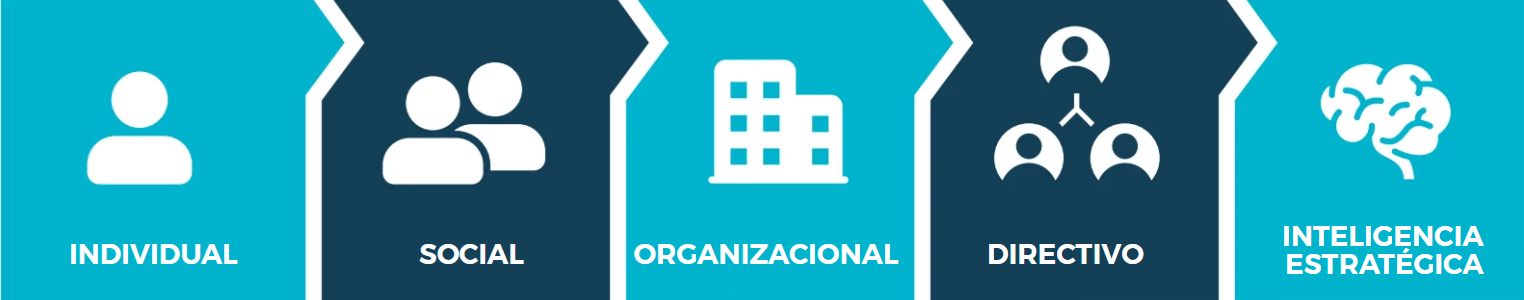 Individual y social (sistema humano), organizacional (sistema estructural), directivo/tomadores de decisión e inteligencia emocional tanto de la organización como individual. (Sistema humano y organizacional).